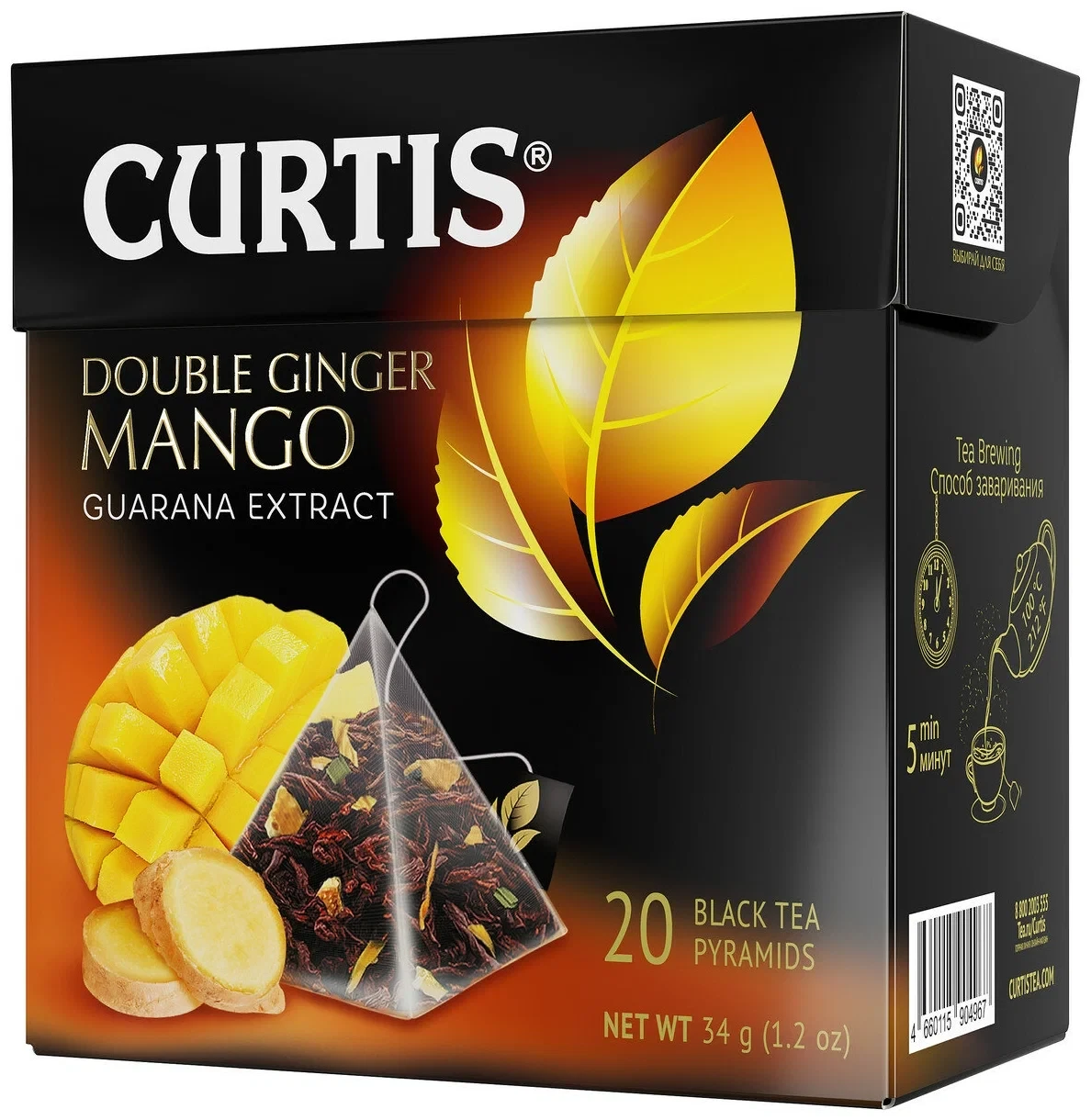 Curtis Double Ginger Mango – ceai negru în piramide, 20 de bucăți.