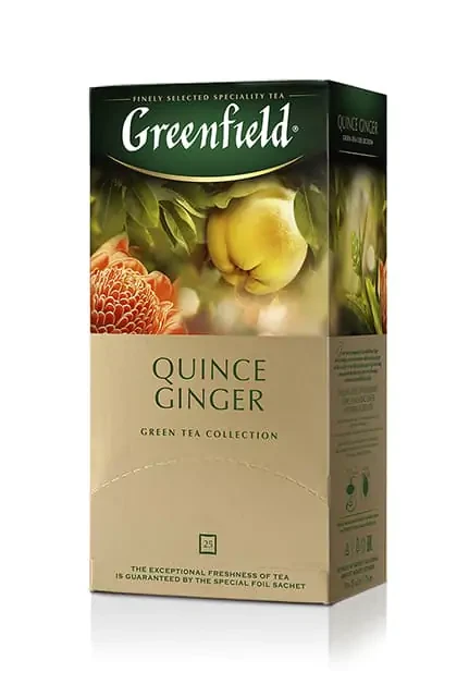 Ceai Greenfield Quince Ginger - ceai verde în plicuri, 25 de bucăți.
