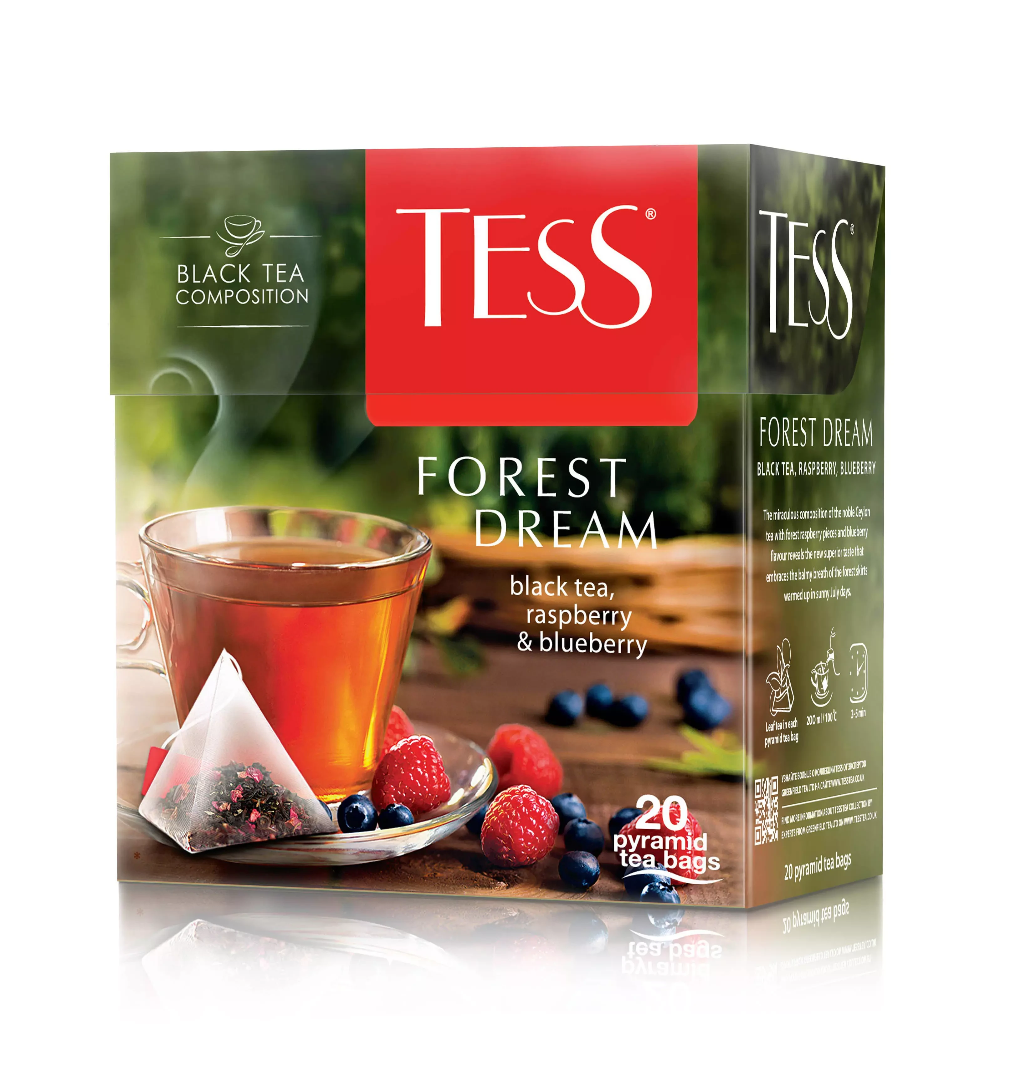 Tess Forest Dream este un ceai negru în piramide, 20 de bucăți.